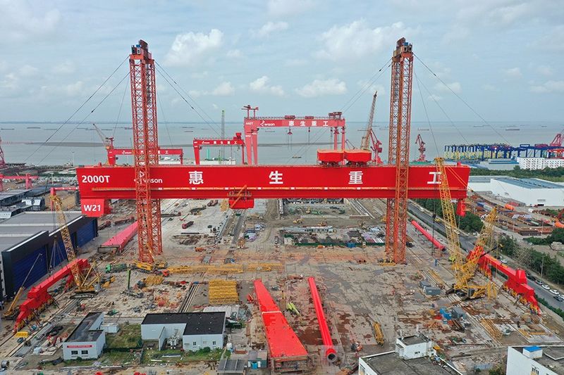 2000t×200m造船門(mén)式起重機(jī)服務(wù)于惠生海工南通基地的船塢擴(kuò)建工程,南通基地是惠生海工主要的浮式設(shè)備生產(chǎn)建造基地。船塢擴(kuò)建工作是整個(gè)南通基地改造項(xiàng)目的重中之重,對(duì)惠生海工增強(qiáng)自身實(shí)力,升級(jí)服務(wù)能力具有戰(zhàn)略意義。未來(lái)改造完成后,惠生海工將能夠?yàn)槿蚩蛻舸笮汀⒊笮透∈椒桨傅腅PCIC總包服務(wù)提供更多選擇。